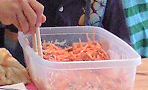 3. ニンジンとレーズンをボールに入れて、カシューマヨネーズとあえる。