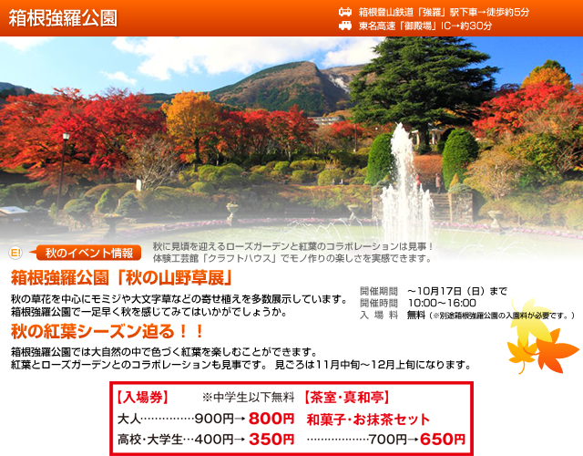 11月中旬~12月上旬 秋の紅葉シーズン 【強羅公園】