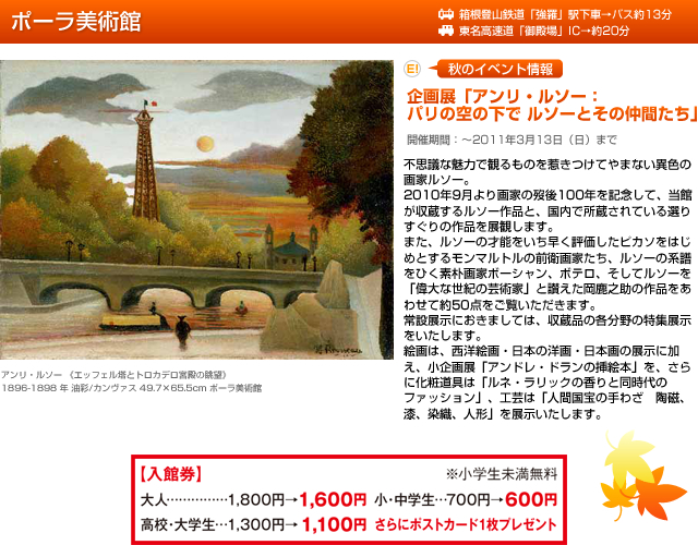 ~3/13 企画展「アンリ・ルソー:パリの空の下で ルソーとその仲間たち」 【ポーラ美術館】