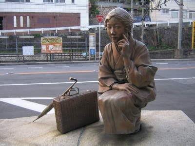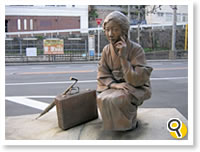 本通り商店街の入口で迎えてくれるのは「芙美子像」