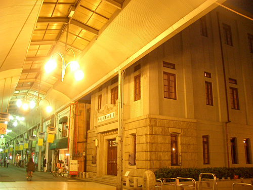 アーケードのデザイン、照明は区画ごとに様々。レトロな区画で夕方に写真を撮ると…こんな感じに。