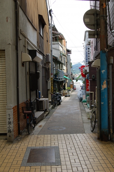 前述したように海岸線に沿って伸びるこの商店街。駅を背にして右側が海、左が山、しかも趣のある小路が繋いでいるのです。