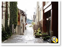 海岸に沿って約1.6km。寺社の多い山側と海側をつなぐようにたくさんの小路が伸びています。